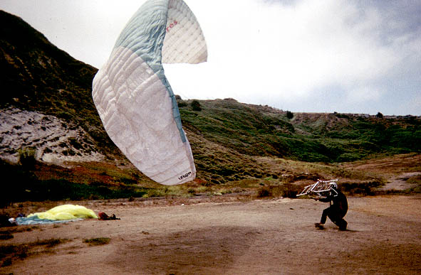Gonflage par vent fort avec les oreilles sous une "Cage"